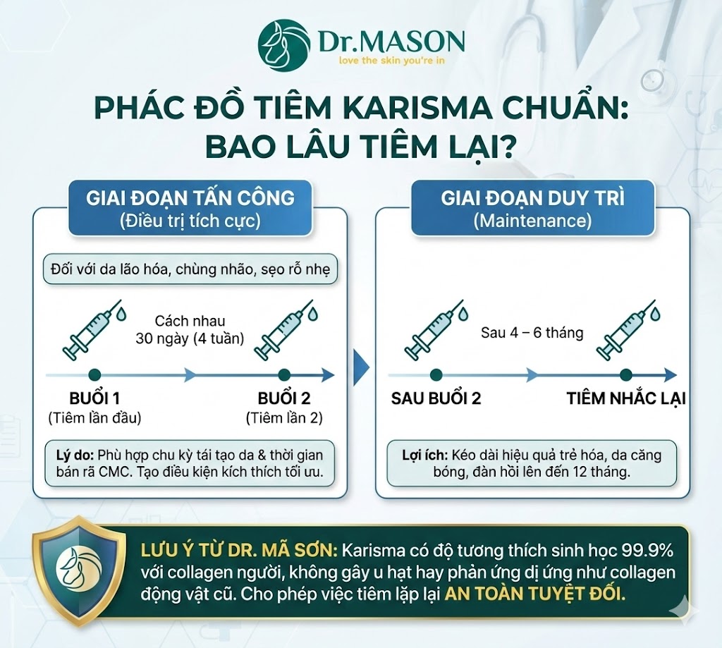 Tiêm Karisma bao lâu tiêm lại? Phác đồ Rh Collagen chuẩn y khoa từ Dr. Mã Sơn