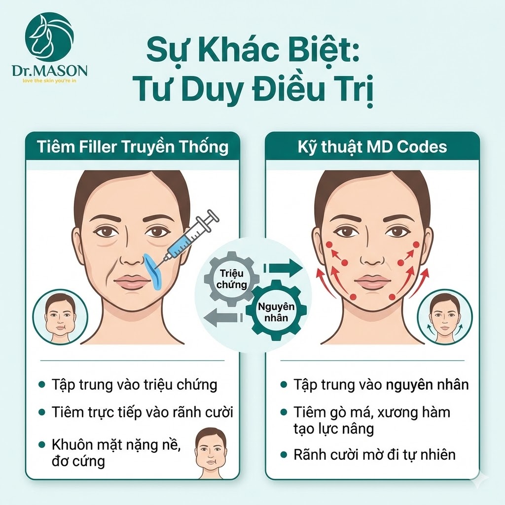 Sự khác biệt lớn nhất giữa việc "tiêm Filler thông thường" và "tiêm theo phương pháp MD Codes" nằm ở tư duy điều trị.